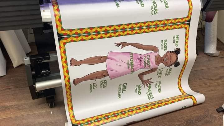 Diana heeft samen met Cas Hofstee voor onze peuter-kleuterschooltjes eigen onderwijsmateriaal ontwikkeld. Op basis van de input die Diana kreeg van lokale leerkrachten heeft Cas de afgelopen tijd materiaal getekend, dat met ingang van het nieuwe jaar gebruikt gaat worden op de schooltjes. We gaan het ook introduceren op een school voor dove kinderen.Het materiaal omvat leskaartjes voor op tafel en grote doeken om in de klas op te hangen. Hiermee leren kinderen vormen, kleuren, getallen, letters en lichaamsdelen. En dat tweetalig, want Engels is de officiële voertaal naast het eigen Chichewa.