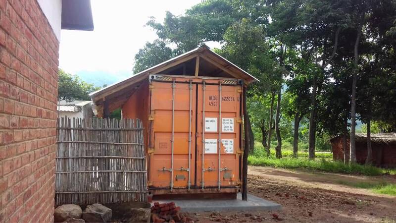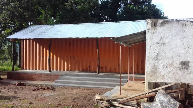 Kijk wat er van de container is geworden! Onze mensen hebben er (zonder één enkele machine) een fundering onder gebouwd. Met veel creativiteit ook een overkapping en veranda! Zojuist heb ik hen betaald voor het harde werk. In de toekomst nog een kleurige make-over, een deur en twee ramen. En klaar is onze nieuwe activiteiten ruimte!