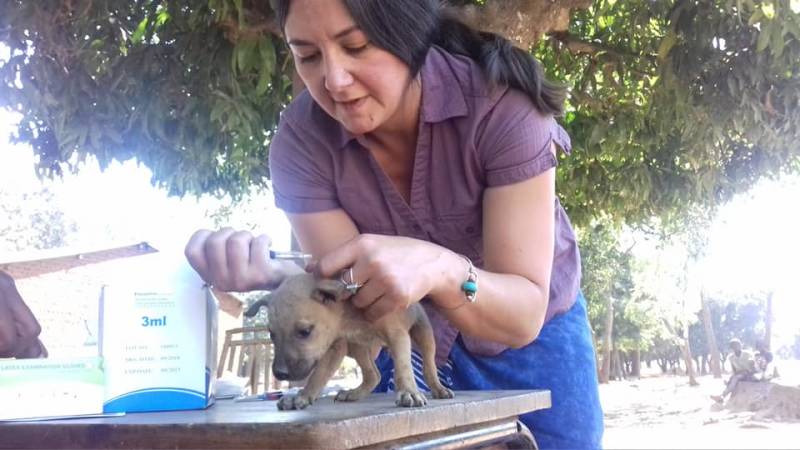 Onze gast, paraglider en dierenarts Patti Mayfield uit Oregan, V.S., heeft vandaag meer dan 80 honden in Mganja gevaccineerd tegen hondsdolheid. En meteen ook behandeld tegen teken en vlooien. Haar geschenk aan de gemeenschap hier.