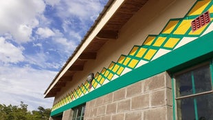 The second block of two classrooms is being painted at present. Storm drainage under construction.